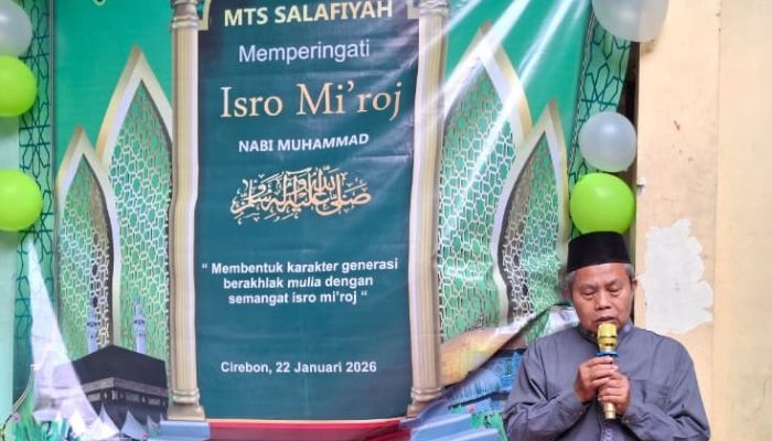 Kota Cirebon — Madrasah Tsanawiyah (MTs) Salafiyah Kota Cirebon menggelar peringatan Isra Mi’raj Nabi Muhammad SAW pada Kamis, 22 Januari 2026. Kegiatan yang berlangsung khidmat di halaman tengah madrasah ini diikuti oleh seluruh sivitas akademika dan sepenuhnya dikelola oleh pengurus OSIS baru, mulai dari tahap persiapan hingga pelaksanaan acara.